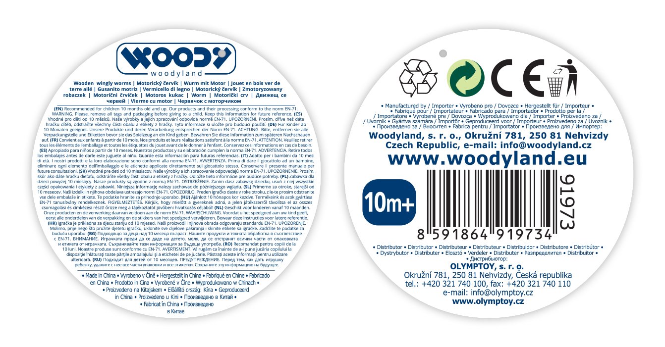 Vhodné pro děti od 10 měsíců. UPOZORNĚNÍ. Prosím, dříve než dáte hračku dítěti, odstraňte všechny části obalu a etikety z hračky. Tyto informace si uložte pro budoucí použití. Naše výrobky a jejich zpracování odpovídá normě EN-71.